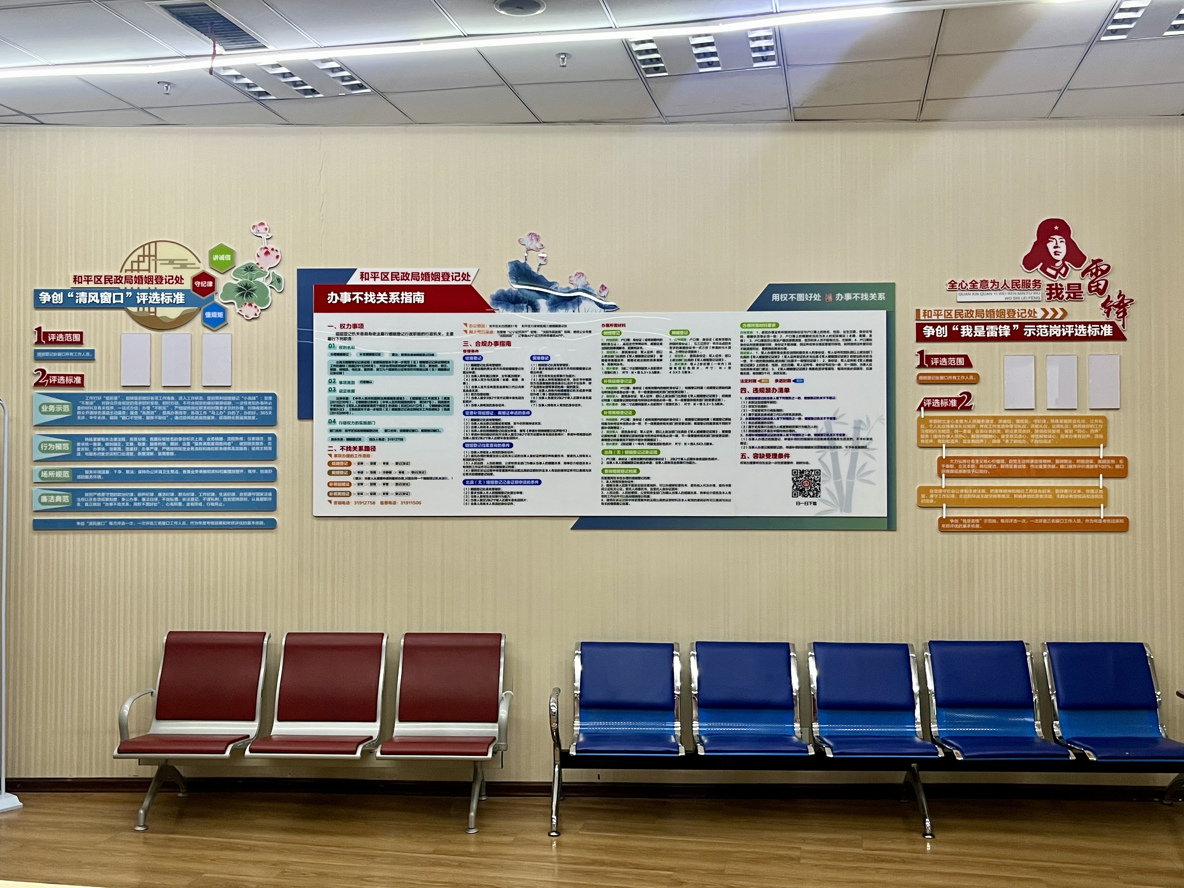 (和平区民政局婚姻登记处将权力事项、办事路径、办事指南等规范上墙)